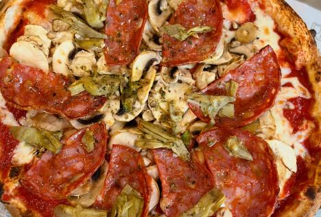 Tomates, mozzarella, oignons rouges, artichaut, salami Nduja (fondant et piquant)
