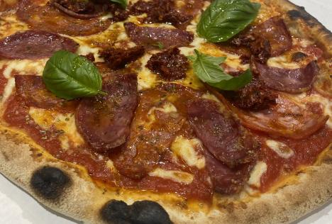 Tomates, mozzarella, salami piquant, salami Nduja(fondant et piquant), salami non-piquant