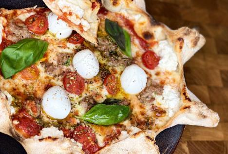 Tomates San Marzano, mozzarella, tomates cerises, saucisse italienne, bocconcini di Bufala, croutes fourrées à la ricotta